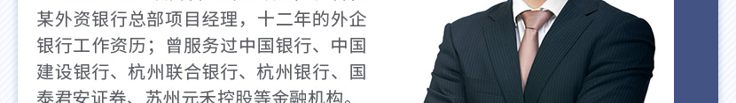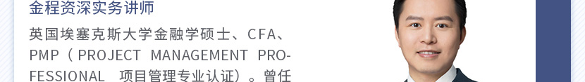 金程教育資深培訓(xùn)師,CFA/PMP持證人。曾任外資銀行總行項目經(jīng)理和支行行長,有十余年外資銀行工作經(jīng)驗。