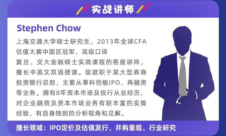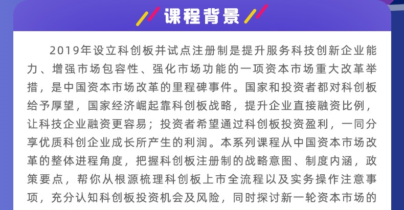 收藏 本課程主要介紹科創(chuàng)板誕生的原因及歷史意義,比較國內(nèi)外資本市場(chǎng)科技創(chuàng)新類企業(yè)踏入資本市場(chǎng)的不同方式,深層次分析科創(chuàng)板的推出對(duì)科技創(chuàng)新企業(yè)發(fā)展的重要性。同時(shí),從承攬-承做-承銷及估值定價(jià)4個(gè)方面,對(duì)投行從業(yè)人員評(píng)估科創(chuàng)板公司價(jià)值屬性有著較強(qiáng)的實(shí)踐意義。