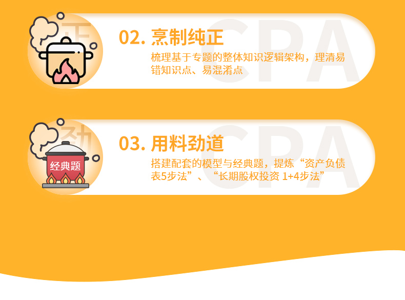 以掌握考試技巧,鞏固、強(qiáng)化對(duì)CPA考察重點(diǎn)和難點(diǎn)的梳理為目標(biāo),配合大量習(xí)題的演練,360度全方位能力提升,重點(diǎn)難點(diǎn)問題一網(wǎng)打盡,有的放矢地幫助考生從容面對(duì)考試。