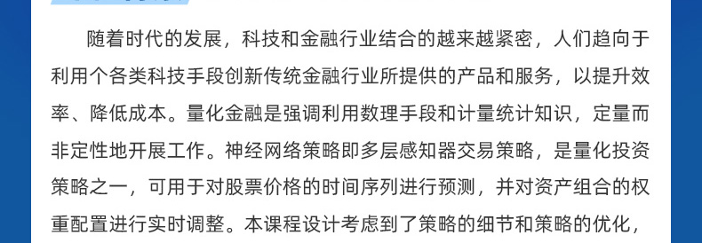 神經(jīng)網(wǎng)絡(luò)策略即多層感知器交易策略,是量化投資策略之一,可用于對股票價(jià)格的時(shí)間序列進(jìn)行預(yù)測,并對資產(chǎn)組合的權(quán)重配置進(jìn)行實(shí)時(shí)調(diào)整。