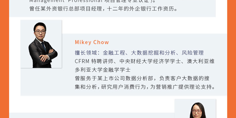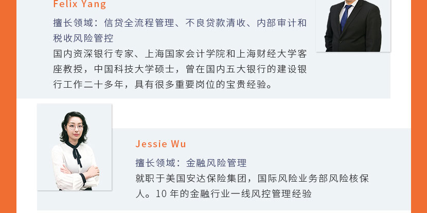 就職于美國(guó)安達(dá)保險(xiǎn)集團(tuán),畢業(yè)于復(fù)旦大學(xué)經(jīng)濟(jì)系金融專業(yè),10年的金融行業(yè)一線風(fēng)控管理經(jīng)驗(yàn)。