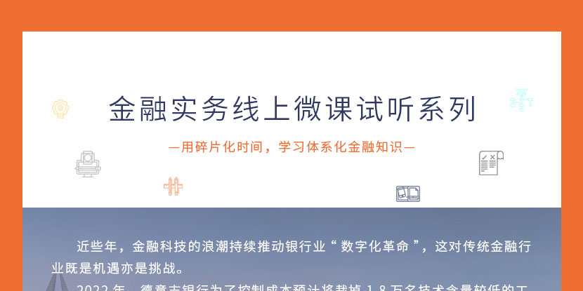 收藏 實(shí)務(wù)微課十大板塊涵蓋全部重點(diǎn)精品系列專題,包括金融基礎(chǔ)、進(jìn)階應(yīng)用、實(shí)務(wù)精講三個(gè)層級(jí),由淺入深,循序漸進(jìn),給您的職業(yè)賦能。