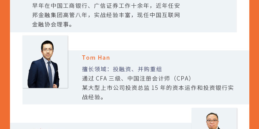 廈門(mén)大學(xué)法學(xué)碩士,現(xiàn)為金誠(chéng)同達(dá)上海辦公室合伙人、十字財(cái)經(jīng)聯(lián)合創(chuàng)始人,深耕新金融與互聯(lián)網(wǎng)行業(yè)。