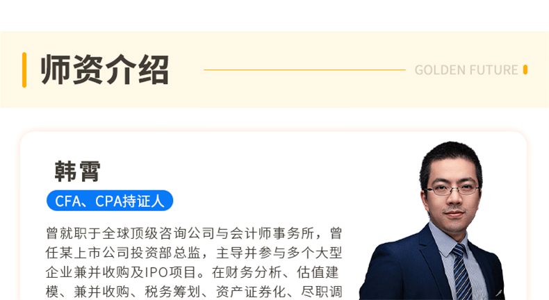 CFA、CPA、RFP持證、CFA ESG Investing ,曾就職于全球頂級(jí)咨詢公司與會(huì)計(jì)師事務(wù)所,擔(dān)任某世界500強(qiáng)投資總監(jiān)。