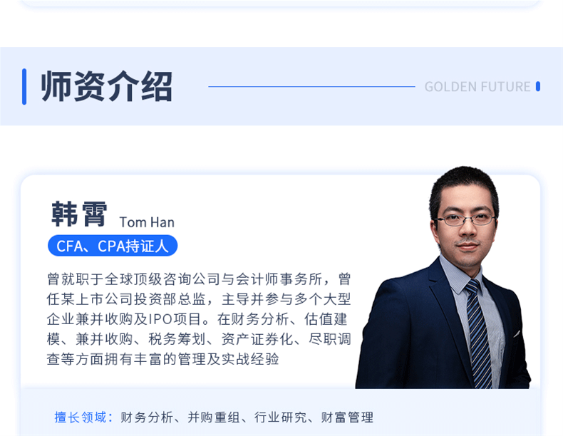 CFA、CPA、RFP持證、CFA ESG Investing ,曾就職于全球頂級咨詢公司與會計師事務(wù)所,擔(dān)任某世界500強(qiáng)投資總監(jiān)。
