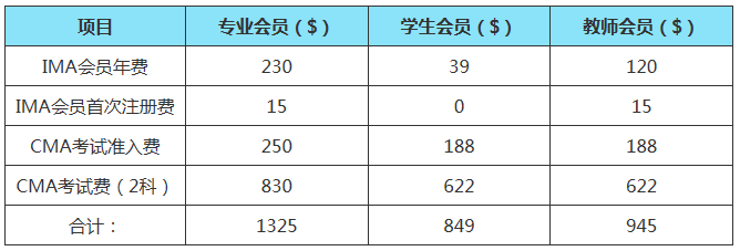 CMA考試費用主要包括:IMA會員首次注冊費、IMA會員年費、CMA考試準(zhǔn)入費、CMA考試費。