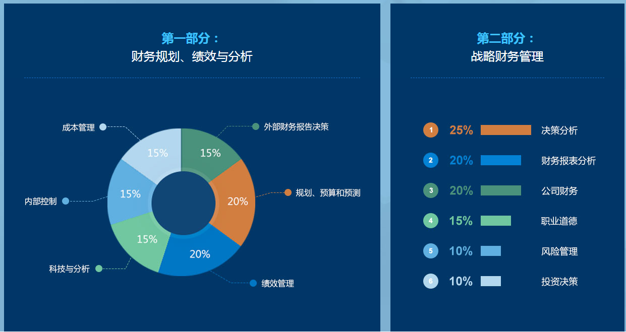 CMA考試分為兩部分,涵蓋財(cái)務(wù)報(bào)告、規(guī)劃、績效和控制,及財(cái)務(wù)決策等多個(gè)方面內(nèi)容。