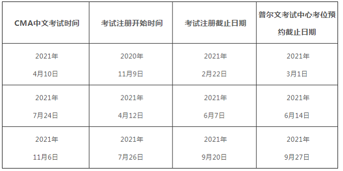 CMA中文考試時間 考試注冊開始時間 考試注冊截止日期普爾文考試中心考位預約截止日期