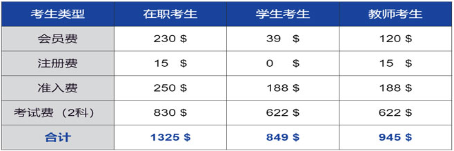 CMA中文考試和英文考試費用是相同的。報考CMA考試,首先要注冊IMA會員,成為IMA會員后,繳納一定的費用方可預約考試。IMA會員又分為專業(yè)會員、學生會員以及教師會員。具體考試費用如下: