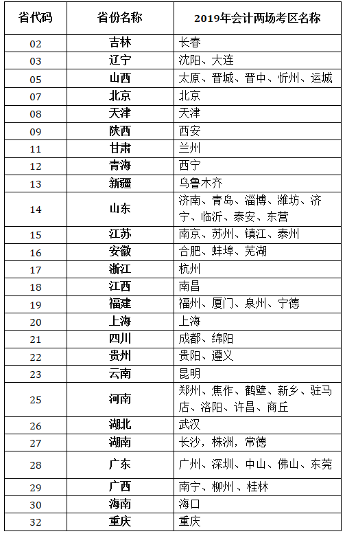 為優(yōu)化考點和機位資源,切實解決北京、上海、深圳及部分考區(qū)參加會計科目考試的考生較多、考點和機位比較緊張的實際問題,依據(jù)《2019年注冊會計師全國統(tǒng)一考試報名簡章》(財考〔2019〕1號)的規(guī)定,經(jīng)財政部注冊會計師考試委員會授權(quán),財政部注冊會計師考試委員會辦公室決定,在北京等63個考區(qū)(見下表)安排兩場會計科目考試,考試時間分別為:10月20日的8:30—11:30和13:30—16:30。