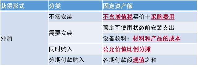 5.分期付款方式購(gòu)買固定資產(chǎn)(超過(guò)了正常信用條件)采用分期付款方式購(gòu)買資產(chǎn),且在合同中規(guī)定的付款期限比較長(zhǎng),超過(guò)了正常信用條件。在這種情況下,該項(xiàng)購(gòu)貨合同實(shí)質(zhì)上具有融資性質(zhì),購(gòu)入固定資產(chǎn)的成本不能以各期付款額之和確定,而應(yīng)以各期付款額的現(xiàn)值之和確定。