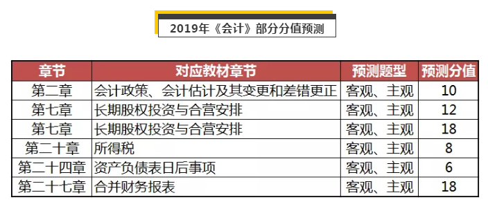 由金程會計的專業(yè)CPA會計老師,根據(jù)CPA近5年的考情分析報告,綜合整理評估出的分值預(yù)估數(shù)據(jù)。(在此只展示部分,不代表只考這些章節(jié))
