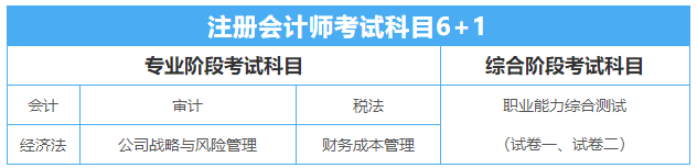 專業(yè)階段考試科目:會(huì)計(jì)、審計(jì)、財(cái)務(wù)成本管理、公司戰(zhàn)略與風(fēng)險(xiǎn)管理、經(jīng)濟(jì)法、稅法。
