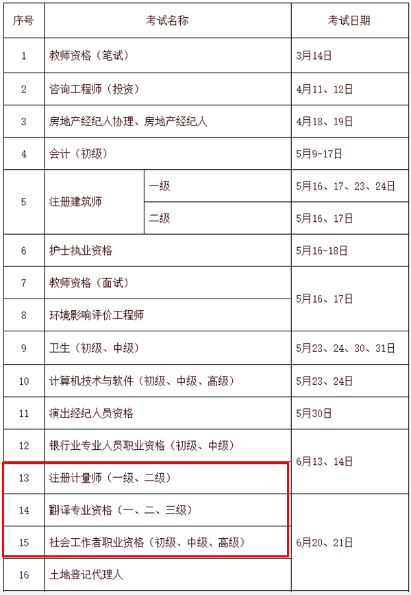 5月7日人事考試中心發(fā)布通告,注冊計(jì)量師等職業(yè)資格考試,2020年度社會工作者職業(yè)資格 (初級、中級、高級)等考試推遲舉行