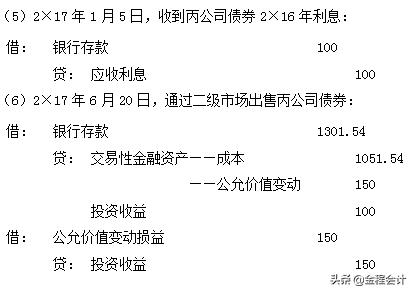(5)2×17年6月20日,通過(guò)二級(jí)市場(chǎng)出售丙公司債券,取得價(jià)款1301.54萬(wàn)元。