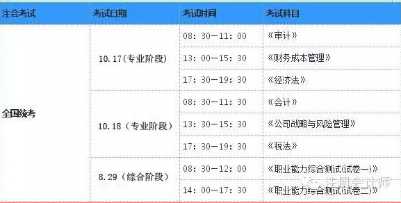參考往年預(yù)測2015年注會(huì)考試具體時(shí)間安排表為: