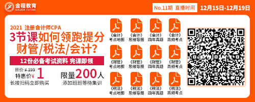 ① 歡迎關(guān)注微信公眾號(hào)“金程CPA”,獲取更多最新資訊和干貨。關(guān)注收藏微信小程序“CPA題庫大全”隨時(shí)隨地在線做題,查缺補(bǔ)漏!