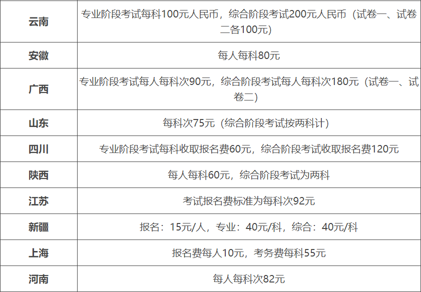 一、cpa考試費(fèi)用一覽表