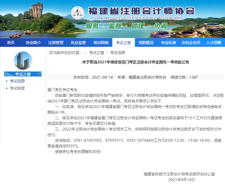 一、經(jīng)批準,報名參加2021年福建省廈門考區(qū)注冊會計師全國統(tǒng)一考試的考生已取得的合格成績有效期延長1年。