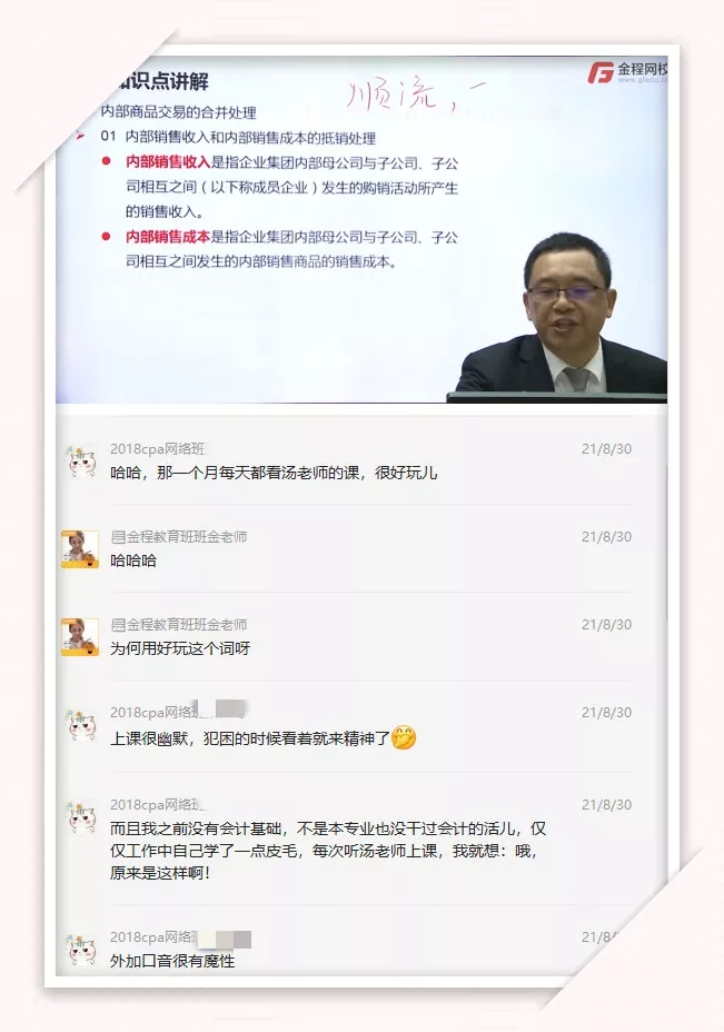 還有就是,如果會計有幸能碰到全程是湯老師授課,通過考試就妥妥的啦!湯震宇老師總是能把專業(yè)的問題捋得很直白,總是能從本質(zhì)出發(fā)講清楚看起來特別高大上的原理,而且上課還幽默風(fēng)趣,看湯老師的視頻保證讓你欲罷不能!
