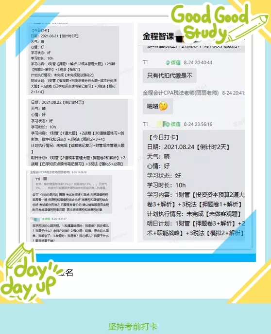 堅持每日打卡,發(fā)到學(xué)習(xí)群里,有人鼓勵你,有人關(guān)心你,有人能看出你的問題,有人能指出你的優(yōu)勢,這些都能帶來正面作用。