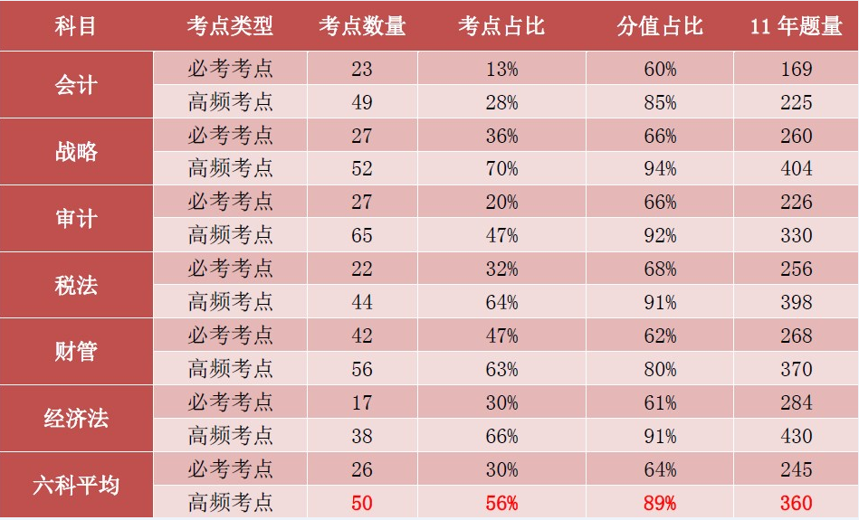 以下圖為例,2011年-2021年的11年真題中,考頻在3年以上的為高頻考點,5年以上的為必考考點,以此就能篩選出各科的最佳刷題量在360題左右(不考慮多套卷子的情況):