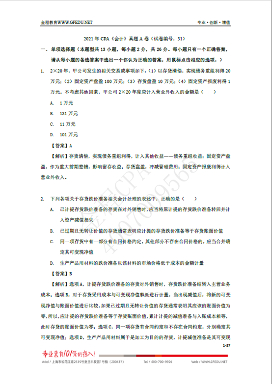 以下部分單選題展示,視頻講解在文章最后,一定要認(rèn)真讀完這篇文章,全是干貨,看完,你一定會(huì)在評論區(qū)感謝我的!(CPA會(huì)計(jì)有1997-2021共32套試卷,本次展示的是第31套)