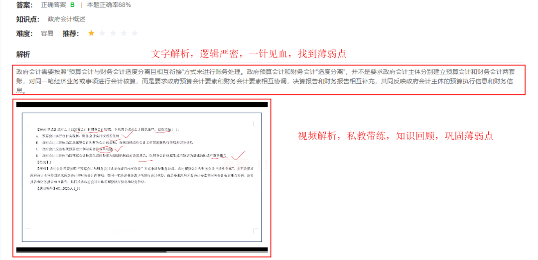 雙解析是金程網(wǎng)校題庫頁面配備的一個(gè)秘密法寶:每個(gè)題目配一個(gè)文字解析和一個(gè)視頻解析。