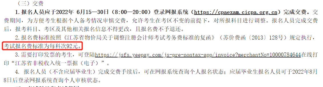 江蘇考區(qū):92元/科