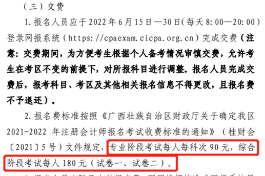 廣西考區(qū):專業(yè)階段90元/科,綜合階段報名費180元