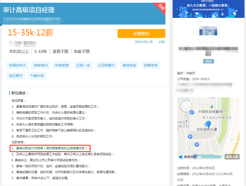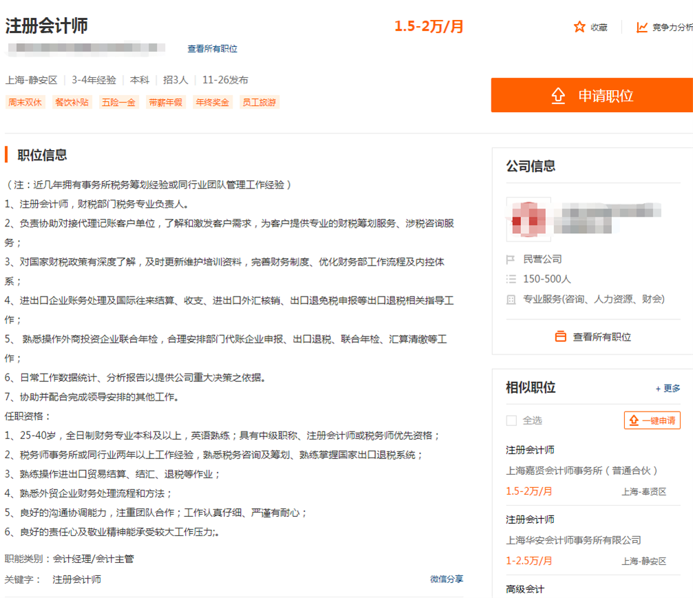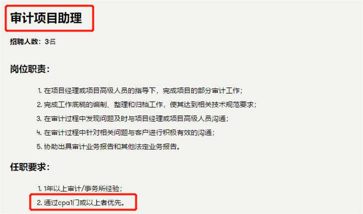 從招聘情況上看,就算你CPA六科并沒有全通過,但是只要通過了其中一科或者兩科,那在求職的時候,真的有很大優(yōu)勢,很多企業(yè)在招聘過程中都會標(biāo)出CPA過1科者優(yōu)先。