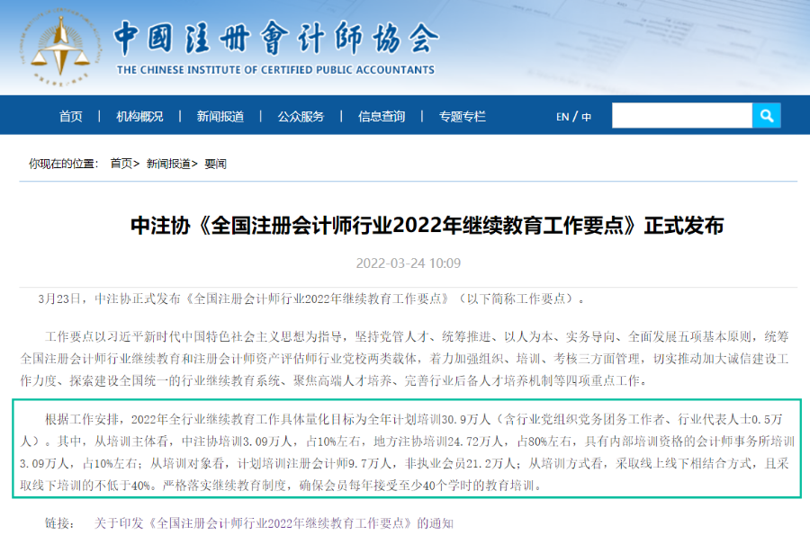 前些日子,中注協(xié)發(fā)布了《全國注冊會計師行業(yè)2022年繼續(xù)教育工作要點》的通知,明確會員每年不得少于40個學(xué)時的教育培訓(xùn)!