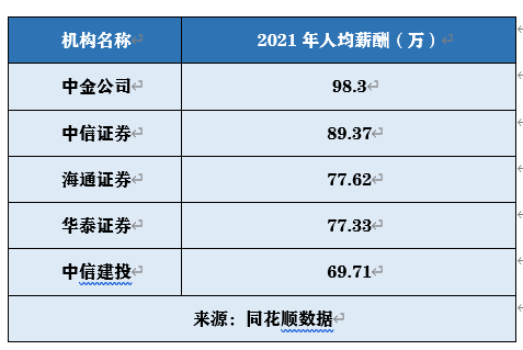 以上為2021年國(guó)內(nèi)頭部投行機(jī)構(gòu)的人均薪酬統(tǒng)計(jì),不難看出,不同公司的薪酬差距較大。