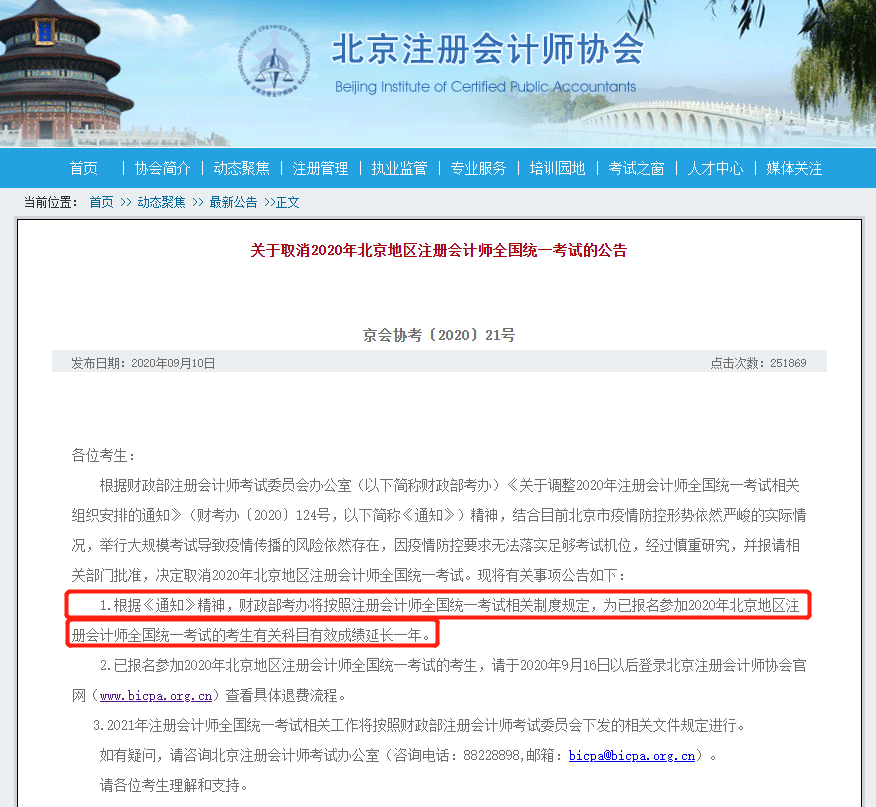 北京注協(xié)公告:2020年已取得的合格成績(jī)有效期延長(zhǎng)一年!
