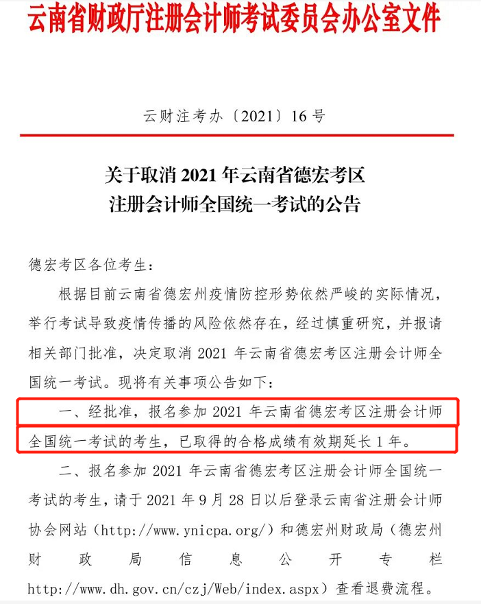 云南財(cái)政廳公告:(德宏考生)2021年已取得的合格成績(jī)有效期延長(zhǎng)一年!