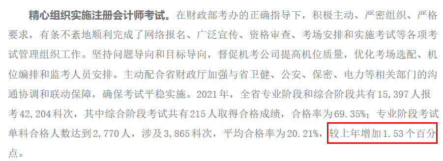 近日,吉林注協(xié)發(fā)布了《2021年工作總結(jié)和2022年工作要點》,首次公布2021年注會考試合格率,較上年增加1.53個百分點。