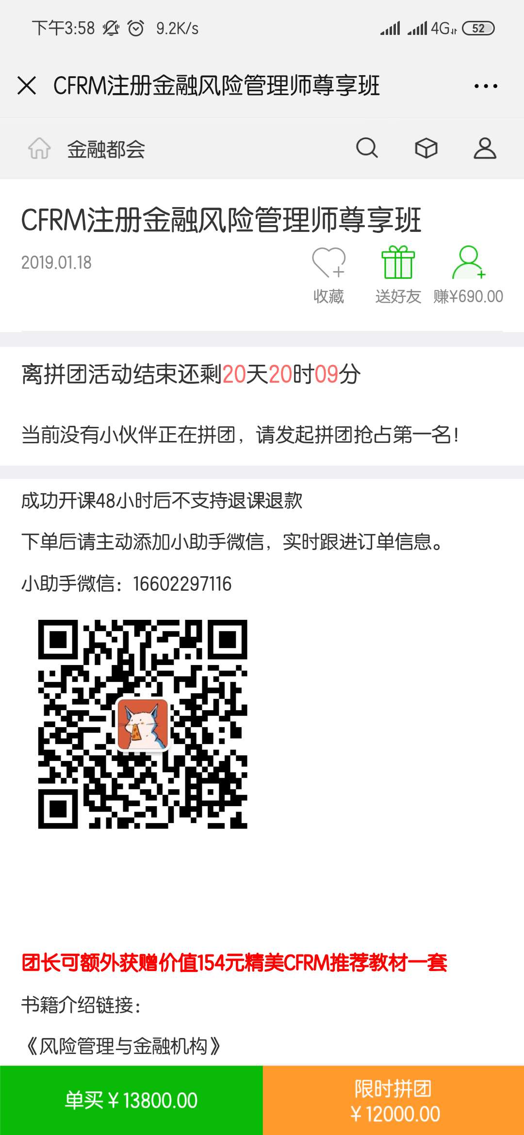 CFRM尊享班拼團(tuán)活動(dòng)重磅來襲,每拼團(tuán)一人減免600元,三人成團(tuán)!團(tuán)長(zhǎng)可額外獲贈(zèng)價(jià)值154元精美CFRM推薦教材一套