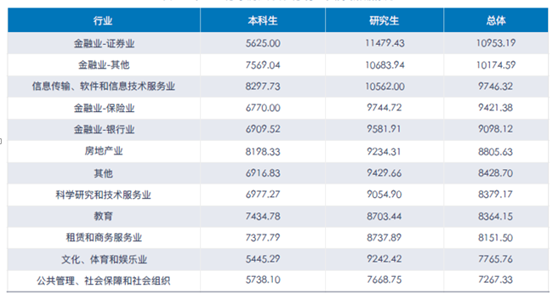 調查顯示,2019年畢業(yè)生平均期望起薪為9573.74元/月,實際獲得8862.14元/月。金融行業(yè)細分領域中,證券業(yè)的實際薪酬名列前茅。