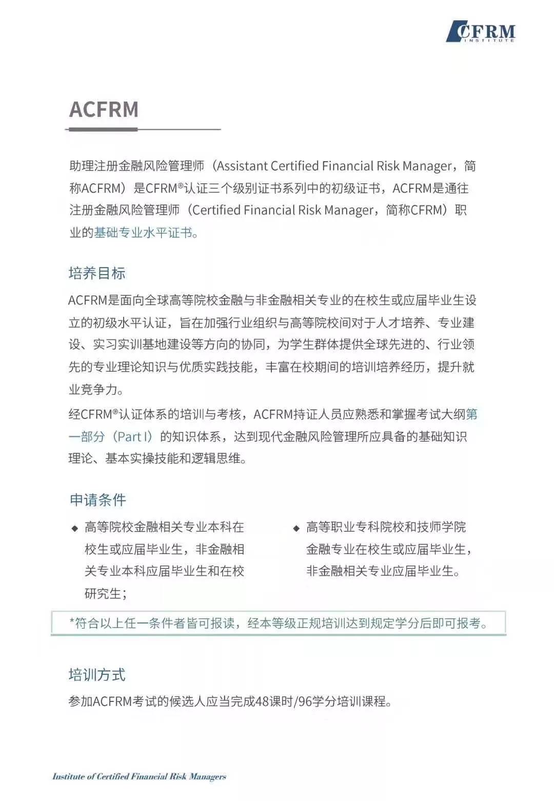 與CFA和FRM不同,三個(gè)級(jí)別只要滿足申請(qǐng)條件,經(jīng)過(guò)培訓(xùn)即可報(bào)名參加考試。CFRM項(xiàng)目組表示在線做法成功!