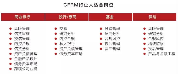 在金融機(jī)構(gòu)進(jìn)一步發(fā)展混業(yè)經(jīng)營的新形勢(shì)下,金融行業(yè)對(duì)復(fù)合型風(fēng)險(xiǎn)管理人才的需求不斷上升,未來十年中國預(yù)計(jì)有100萬符合金融人才缺口。CFRM持證人和SCFRM持證人作為高端風(fēng)控人才的代表,成為各大金融機(jī)構(gòu)爭(zhēng)相搶奪的對(duì)象。