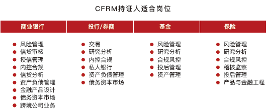 CFRM適合哪些人報(bào)考?金程網(wǎng)校幫大家進(jìn)行了列表細(xì)分,具體如下:
