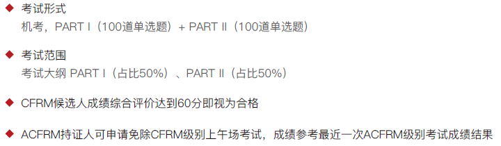 我們來說考試的部分,我們都知道之前的CFRM考試是由筆試來進(jìn)行的,相對來說檢測題型和效率就沒有這么全面。所以,我們現(xiàn)在統(tǒng)一都是由中文、機(jī)考的模式來進(jìn)行檢測。