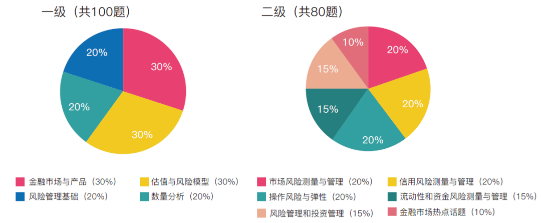 PART I:風險管理基礎(chǔ)(20%),數(shù)量分析(20%),金融市場與產(chǎn)品(30%),估值與風險模型(30%)。