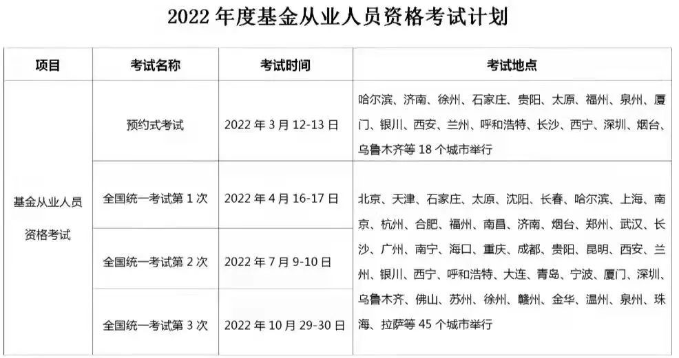 1.2022年度基金從業(yè)人員資格考試計劃
