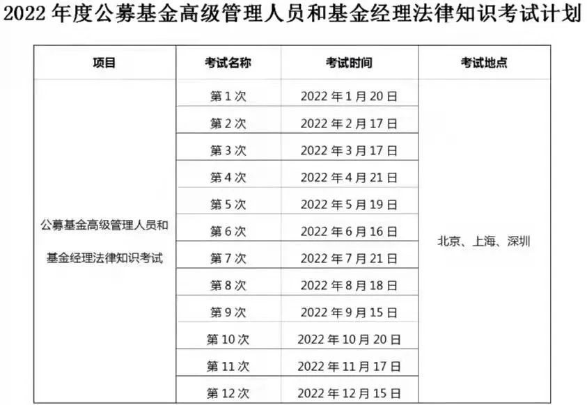 2.2022年度公募基金高級管理人員和基金經(jīng)理法律知識考試計劃
