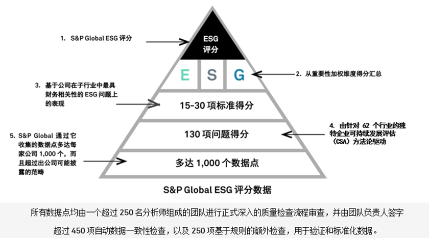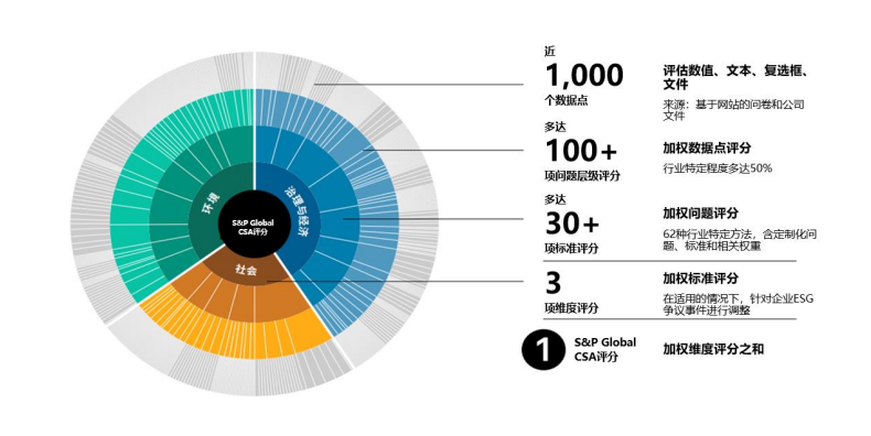 標普全球ESG評分是一個環(huán)境(E)、社會(S)和治理(G)數(shù)據(jù)集,依據(jù)標普全球企業(yè)可持續(xù)發(fā)展評估(CSA)結果獲得,覆蓋目前占全球市值 99%的13,000余家企業(yè),用以衡量公司在重大ESG風險、機遇和影響方面的表現(xiàn)和管理水平。不同于市面上其他 ESG 評分,標普全球 ESG 評分及其所基于的CSA問卷調查構成了一個通過與企業(yè)進行持續(xù)溝通,積極推動企業(yè)ESG披露的獨特生態(tài)系統(tǒng),并將長期助力提高相關可持續(xù)性披露標準。