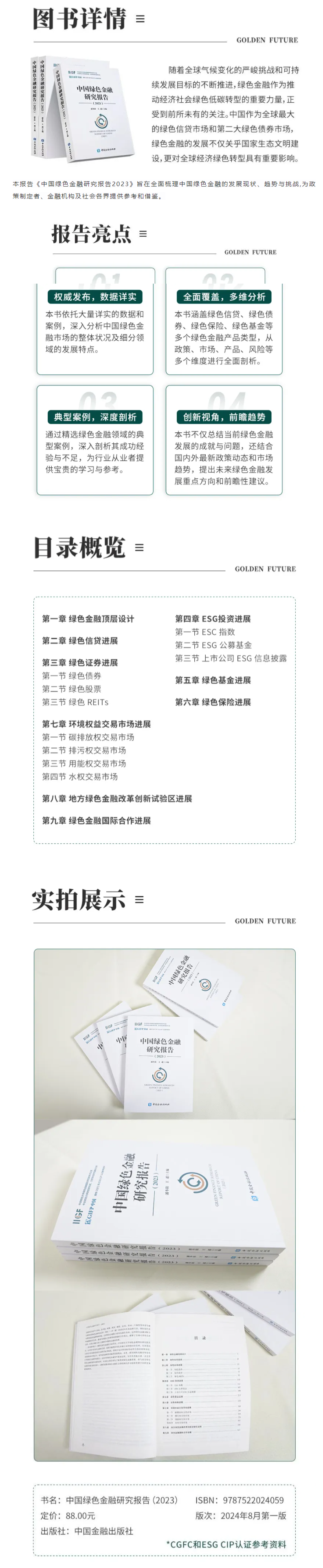 《中國(guó)綠色金融研究報(bào)告》由中國(guó)金融出版社出版,王遙教授主編,是一本全面深入探討中國(guó)綠色金融發(fā)展的權(quán)威著作。書中對(duì)中國(guó)綠色金融的起源、發(fā)展歷程、現(xiàn)狀以及未來趨勢(shì)進(jìn)行了系統(tǒng)性的梳理和分析,為讀者提供了一個(gè)全面了解中國(guó)綠色金融發(fā)展的窗口。