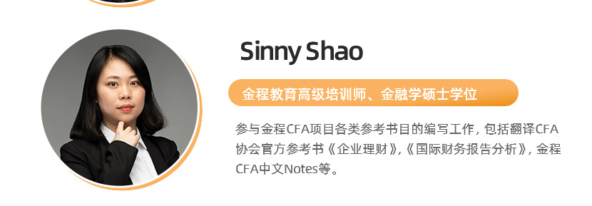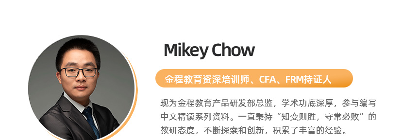 金程教育高級(jí)培訓(xùn)師,CFA持證人。主編CFA全級(jí)別沖刺筆記,參與編撰CFA二、三級(jí)中文精讀,學(xué)術(shù)功底深厚。