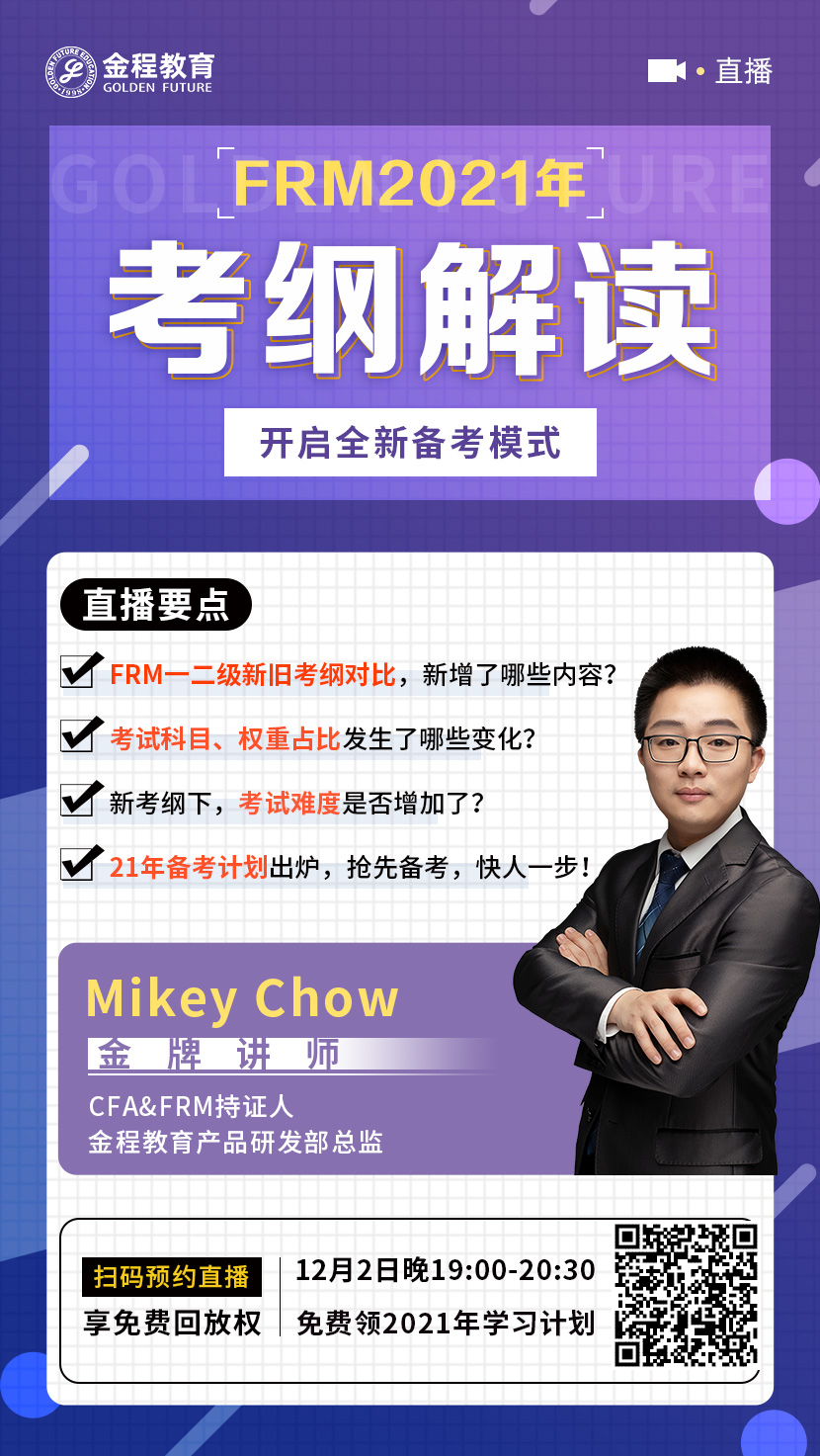 為了幫助大家更好的了解2021年的FRM考綱變化,更好的準(zhǔn)備明年的FRM考試。