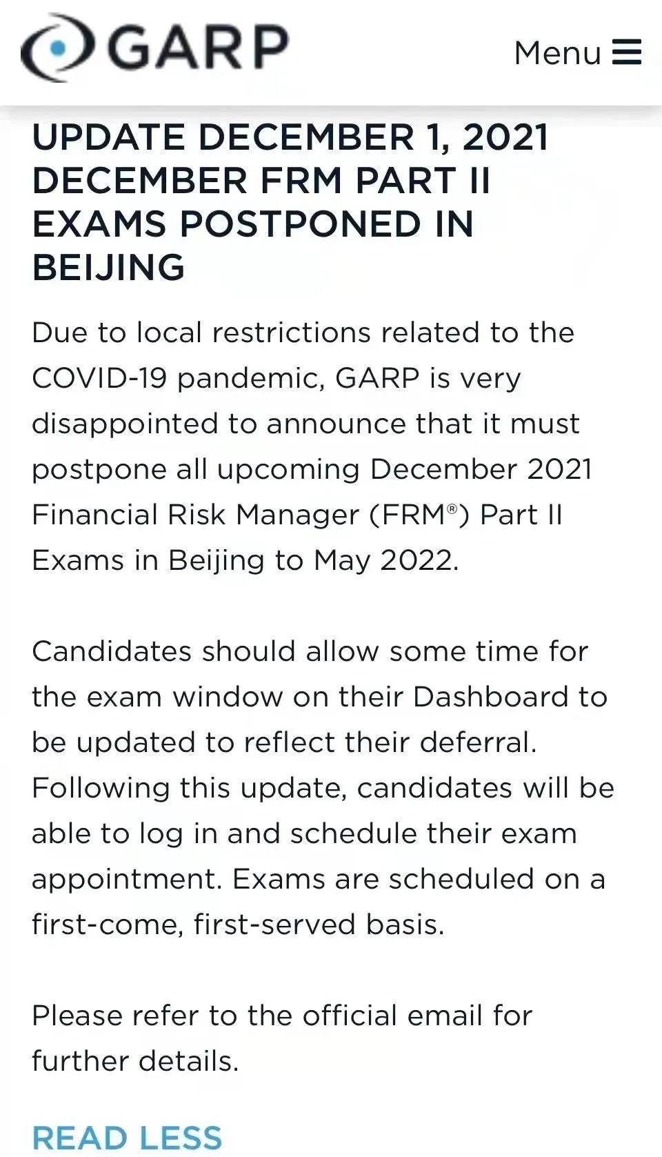 最新消息,GARP協(xié)會通知取消北京12月FRM二級考試!延期到22年5月份!北京的考生可去官網(wǎng)重新選擇考位!這一變動(dòng)讓不少考上開始慌了,不知道自己復(fù)習(xí)計(jì)劃該不該調(diào)整,下面我們來具體了解下考試時(shí)間調(diào)整及FRM機(jī)考如何備考。